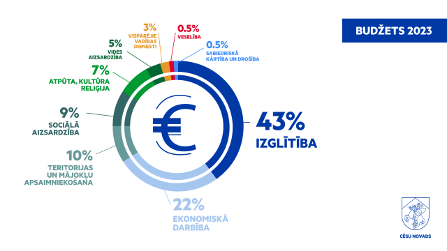 No budžeta izdevumiem lielākais īpatsvars, 43%, paredzēts izglītības funkcijas finansēšanai. Kopumā izglītībai plānoti 40,861 miljons eiro. Izdevumos iekļauts finansējums pedagogu darba algu pieaugumam 900 eiro par likmi skolās un 1070 eiro par likmi pirmsskolās. Kopumā 1,126 miljoni eiro paredzēti ēdināšanas atvieglojumiem novada izglītības iestādēs, 546 700 eiro plānoti skolēnu pārvadājumiem, tāpat arī 2023.gadā pašvaldība nodrošinās peldēt apmācību 1.-4.klašu skolēniem novadā.