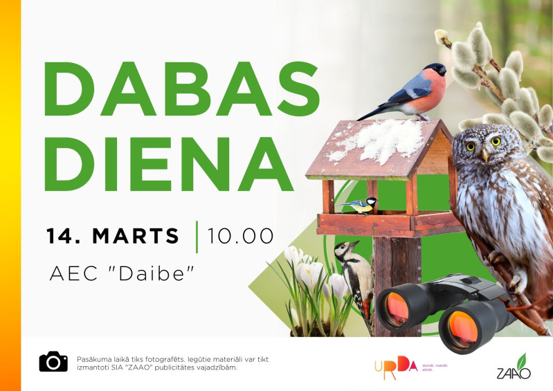 Sestdien, 14. martā, no plkst. 10.00 līdz 14.00 SIA “ZAAO” Dabas un tehnoloģiju parkā URDA notiks Dabas diena, kas šoreiz būs veltīta putnu pasaulei, īpaši izceļot 2026. gada simbolu – apodziņu. Pasākums ļaus iepazīt putnus un vidi sev apkārt, aicinās darboties radoši un apritīgi, kā arī sniegs iespēju ielūkoties atkritumu apsaimniekošanas ikdienā, dodoties ekskursijā pa Aprites ekonomikas centru “Daibe”.