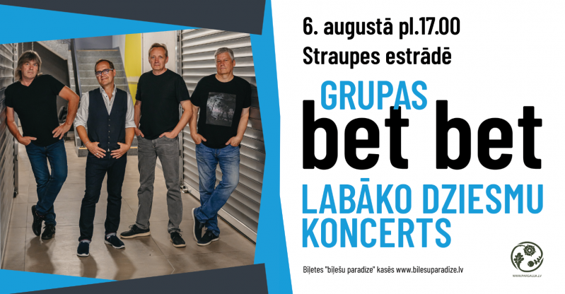 Aicinām uz grupas "bet bet" koncertu, kas noitiks Straupes estrādē 6.augustā plkst.17.00.