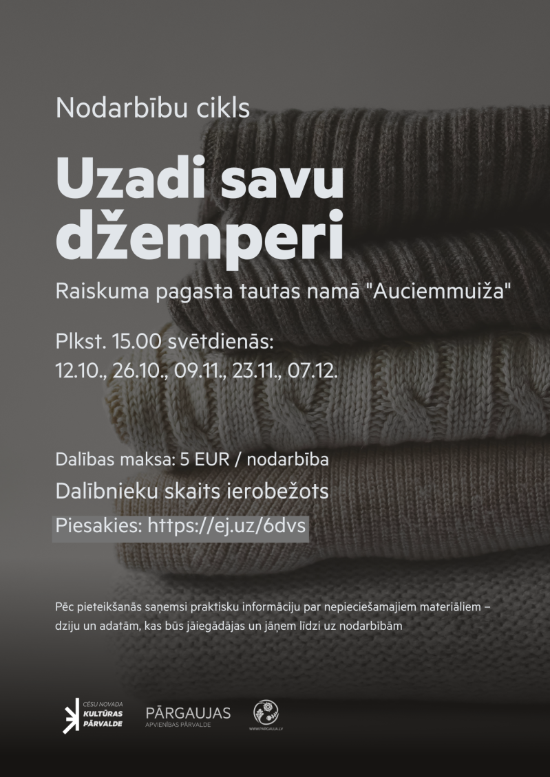 Piesakoties nodarbību ciklam, dalībnieks apliecina arī motivāciju piedalīties visās nodarbībās, lai rezultātā taptu paša darināts džemperis.