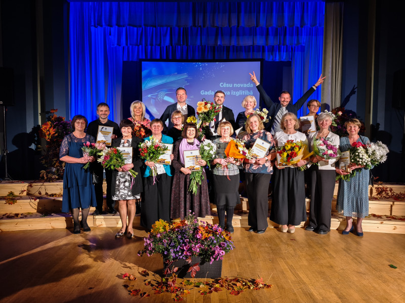 Šodien, 8. oktobrī, Cēsu Valsts Ģimnāzijā notika Cēsu novada izglītības darbinieku un atbalstītāju godināšanas pasākums, kurā tika pasniegtas nominācijas par nozīmīgu ieguldījumu izglītības jomā. Pasākumā godināja skolotāju, vadītāju, kolektīvu un labvēļu darbu.