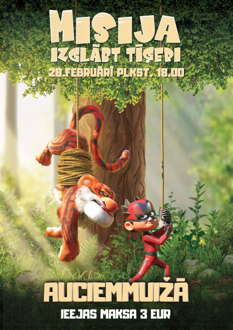 Sestdien, 28. februārī, plkst. 18.00 Raiskuma pagasta Tautas namā "Auciemmuiža" būs skatāma animācijas filma "Misija: Izglābt tīģeri".
