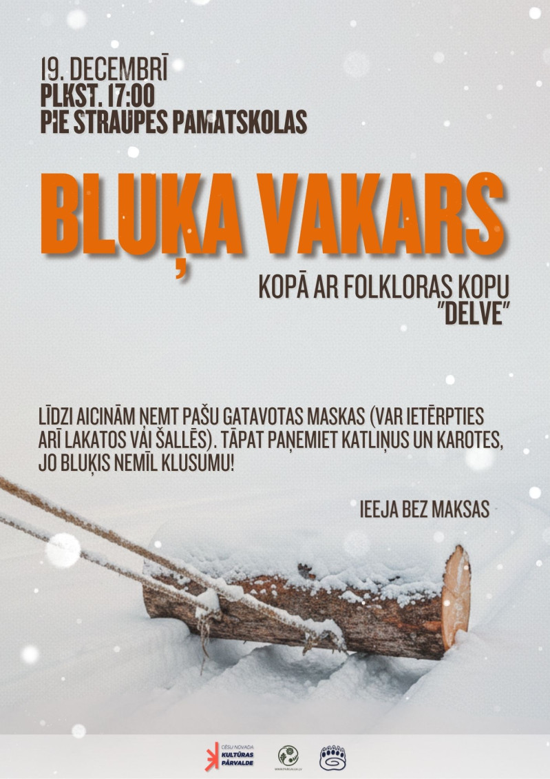 Pievienojies 19. decembrī plkst. 17.00 pie Straupes pamatskolas uz tradīcijām bagātu vakaru, kur kopā ar folkloras kopu “Delve” vilksim bluķi, dziedāsim un modināsim gaismu.