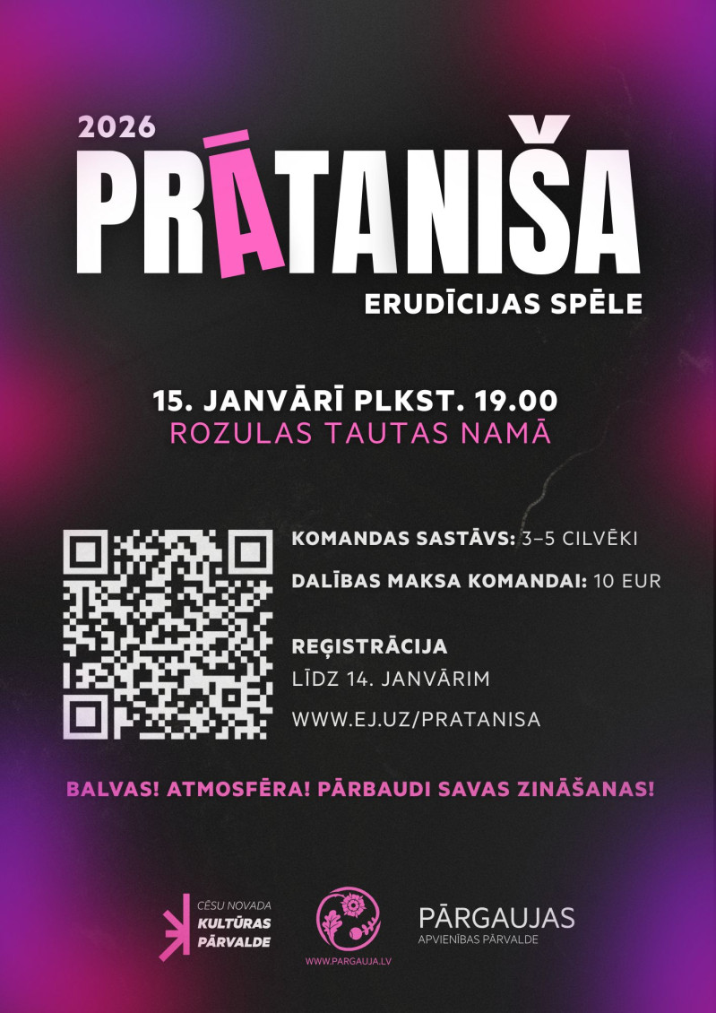 Turpinot 2025. gadā iesākto tradīciju, arī šogad aicinām piedalīties aizraujošā erudīcijas spēļu ciklā "Prāta niša", kas notiks katru mēnesi līdz pat aprīlim!
