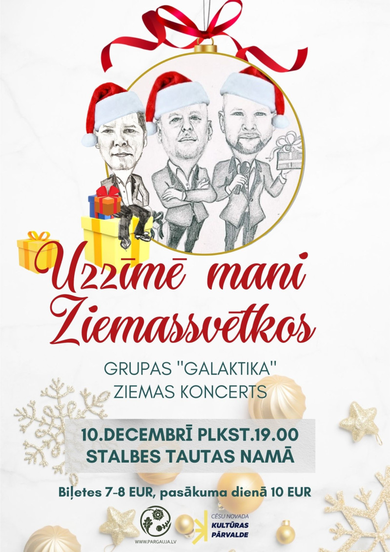 Populārā mūzikas grupa "Galaktika" ar ziemas koncertu “Uzzīmē mani Ziemassvētkos” 10. decembrī plkst. 19.00 viesosies Stalbes Tautas namā.