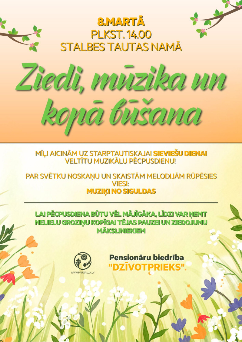 Uz pasākumu visus laipni aicina pensionāru biedrība “Dzīvotprieks”!