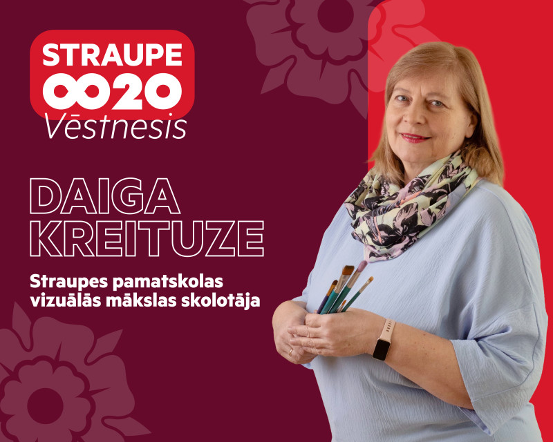 Pirmā “Straupei 820” svētku vēstnese ir Daiga Kreituze, Straupes pamatskolas vizuālās mākslas skolotāja. Ar Straupi viņas dzīve saistīta kopš 1989. gada, kad iepazinās ar savu vīru un pārcēlās uz dzīvi šeit. “Straupe ir mana vīra dzimtā puse, un tā kļuva arī par manām mājām,” stāsta Daiga.