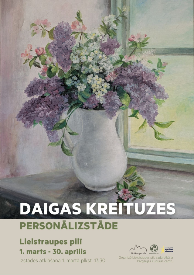 Svētku ieskaņās Daiga Kreituze 1. martā plkst. 13.30 Lielstraupes pilī aicina ikvienu uz savu gleznu personālizstādes atklāšanu! Izstādē būs iespēja ielūkoties skolotājas radošajā pasaulē, izzināt viņas darbu tapšanas procesu un iedvesmas avotus. Izstāde Lielstraupes pilī būs apskatāma līdz 30. aprīlim.