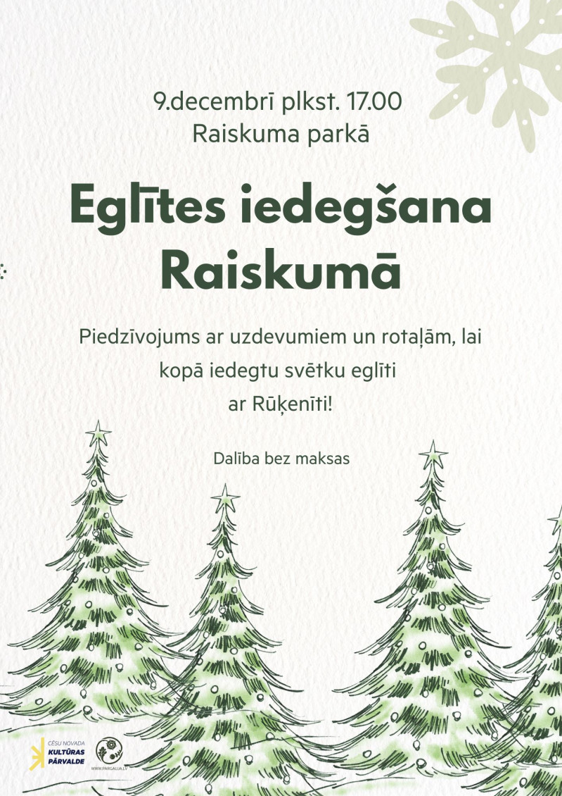 Aicinām uz Ziemassvētku eglītes iedegšanas pasākumu Raiskuma parkā 9. decembrī plkst. 17.00!