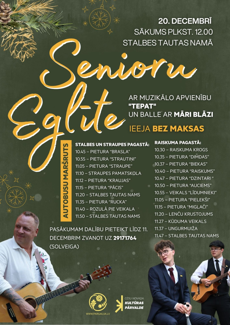 Sestdien, 20. decembrī, plkst. 12.00 Stalbes Tautas namā notiks Ziemassvētku pasākums Pārgaujas apvienības senioriem.